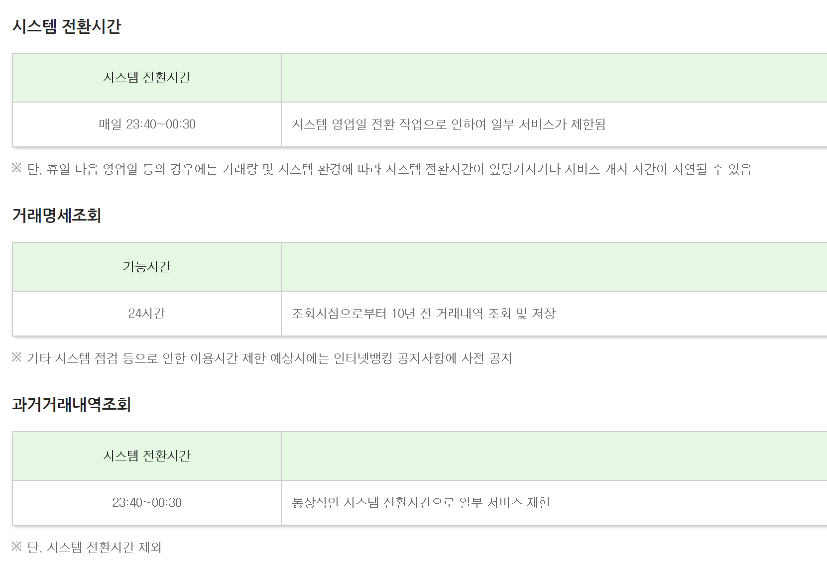 점검시간동안에는 과거거래내역 조회와 같은 서비스가 제한될 수 있습니다.