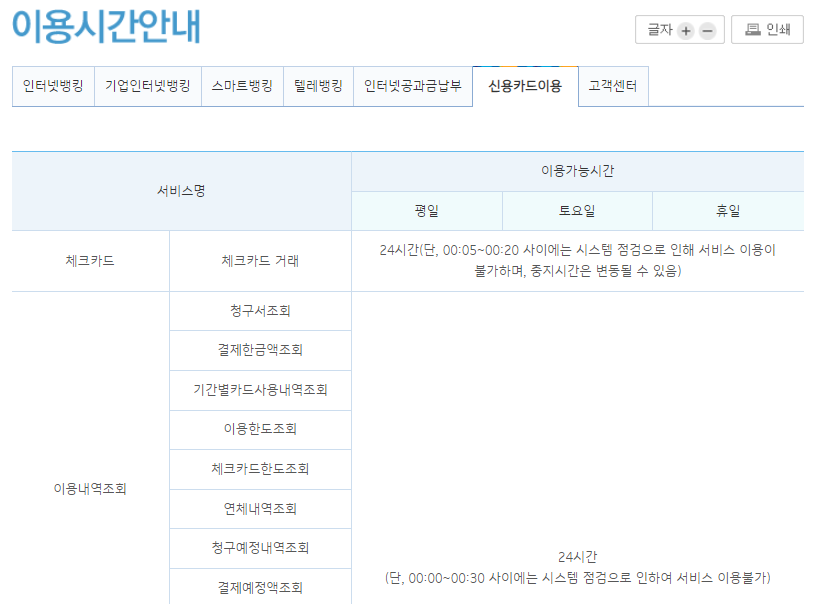 기업은행 체크카드 점검시간은?